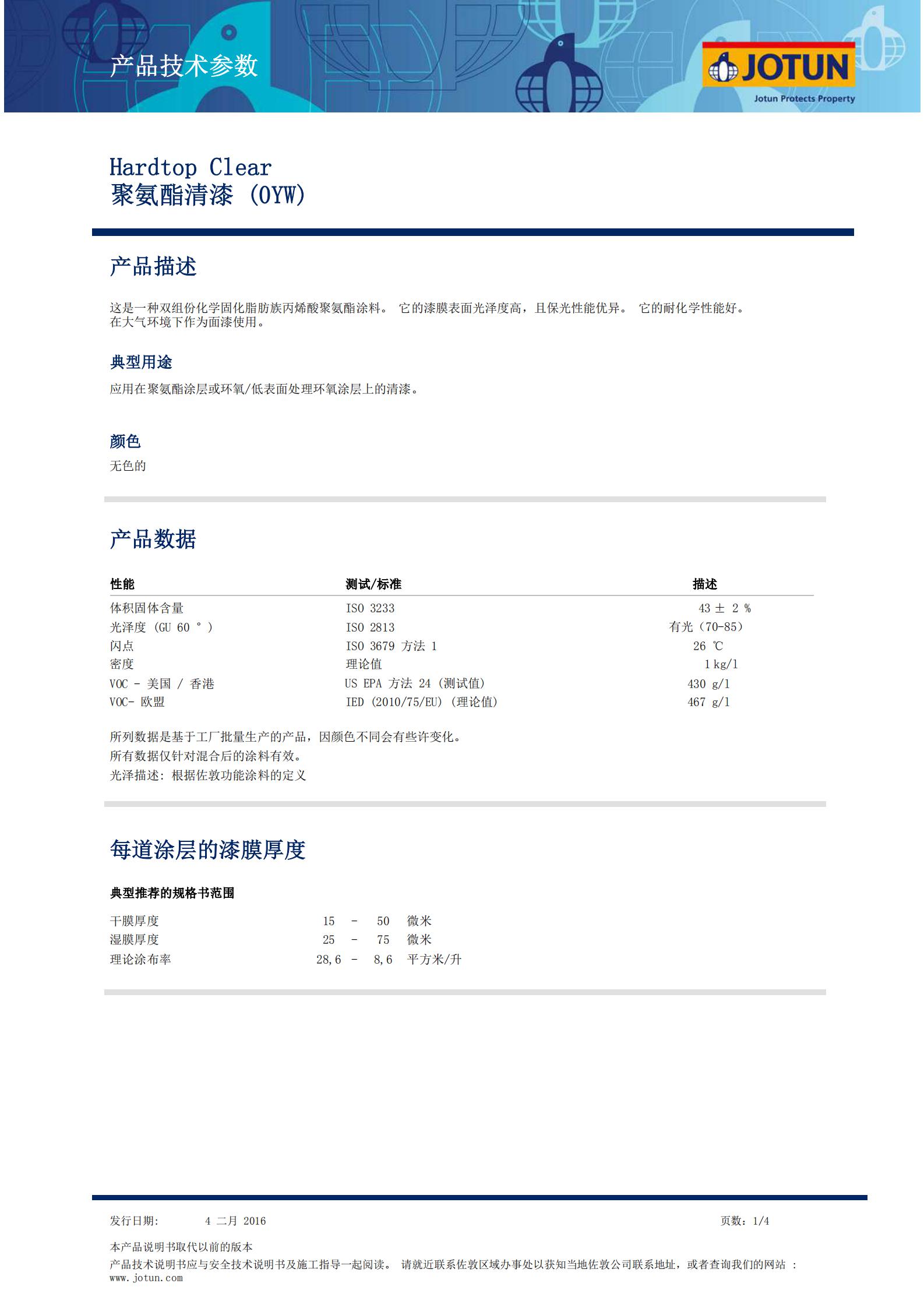 TDS-Hardtop Clear 聚氨酯清漆